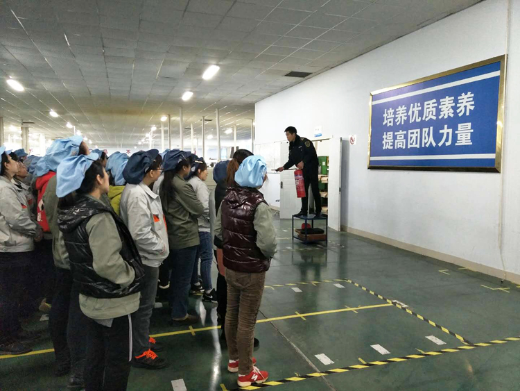 2017年12月14日制造中心邀請(qǐng)德州市社安消防中心老師對(duì)全公司職工進(jìn)行消防安全知識(shí)培訓(xùn)及實(shí)地演習(xí)。■ 消防理論知識(shí)培訓(xùn)。